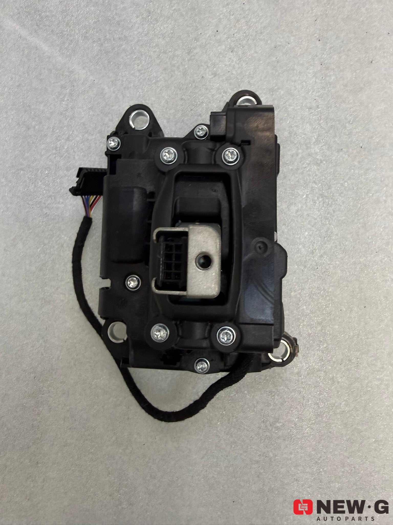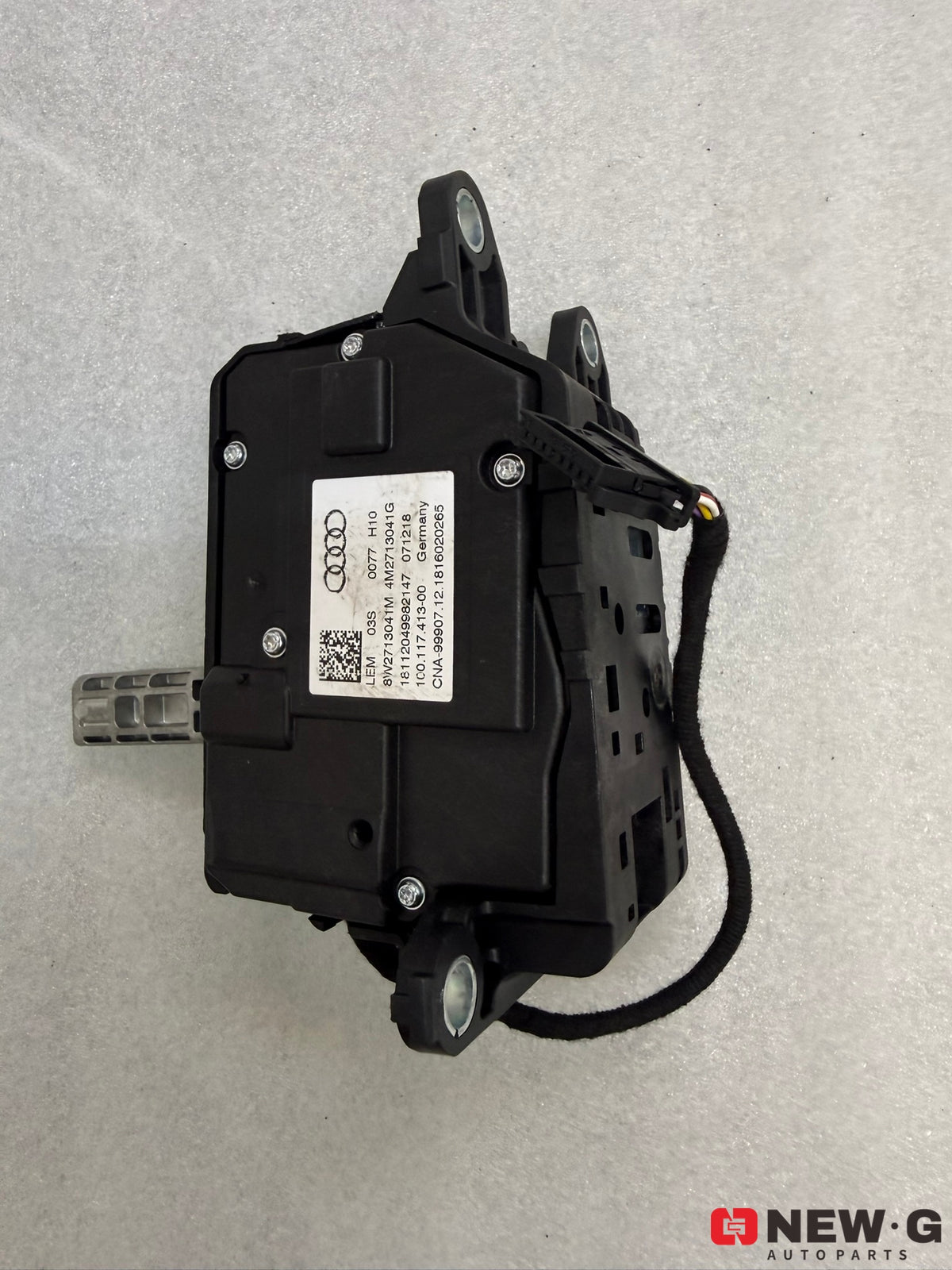 Genuine Audi RS4 B9 automatic transmission gear shifter selector mechanism. This internal assembly (Part No: 8W2 713 041 M) is the core unit that translates driver input into electronic gear signals. The unit is in excellent mechanical condition, with the mounting bushings and electrical harness connector fully intact. It has been tested to ensure smooth movement through the gates and reliable communication with the transmission control module. Perfect for resolving "shifter malfunction" errors or physical sticking issues.